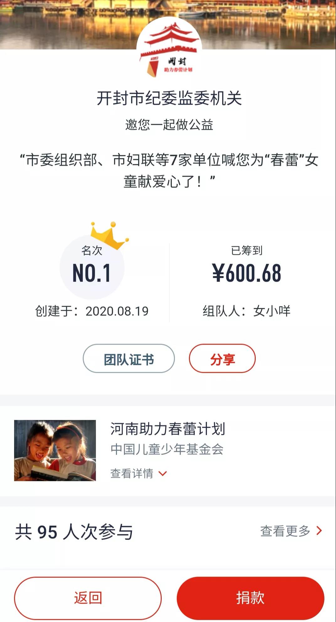 “这个活动很有意义,捐款能获得网络配捐,募集的资金还可以用于本单位确定的救助对象,切实把放大的爱心落在实处。”在场捐款的同志们纷纷表示。截至目前,参与捐款的人员已达到95人次。