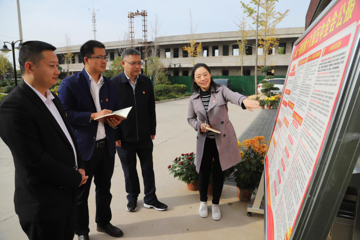 (图为,通许县纪委监委“领学团”成员观看十九届五中全会展板 李依芳/摄)