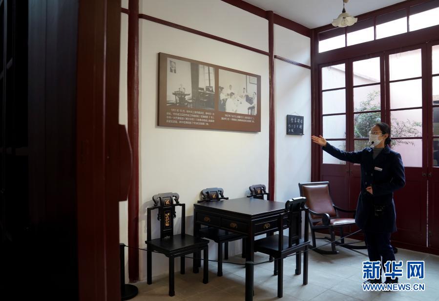 1月18日,在“中国共产党发起组成立地”和“《新青年》编辑部旧址”内,讲解员在讲解。新华社记者 刘颖 摄