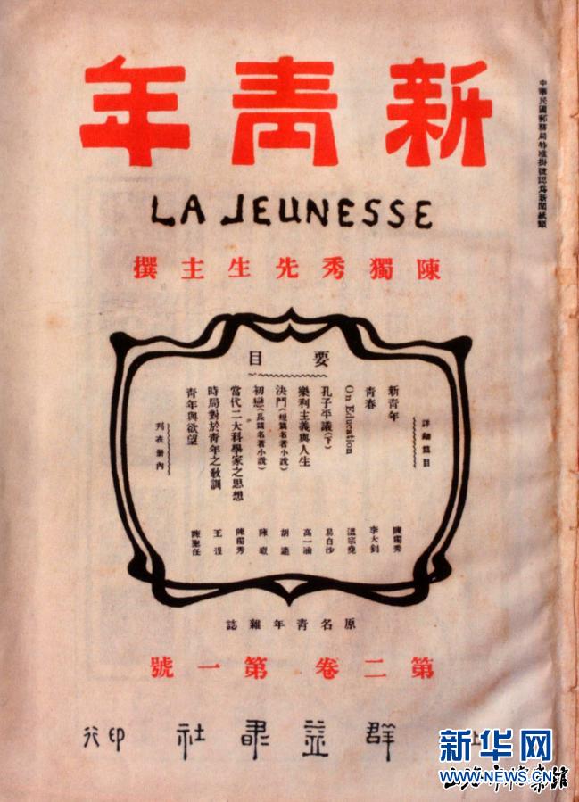 这是1916年9月1日出版的《新青年》杂志封面。新华社发(上海市档案馆供图)