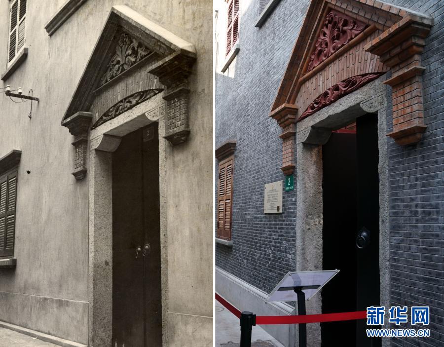 拼版照片:左图是法租界老渔阳里2号的历史照片(上海市档案馆供图);右图是1月18日拍摄的南昌路100弄2号(新华社记者刘颖摄)。新华社发