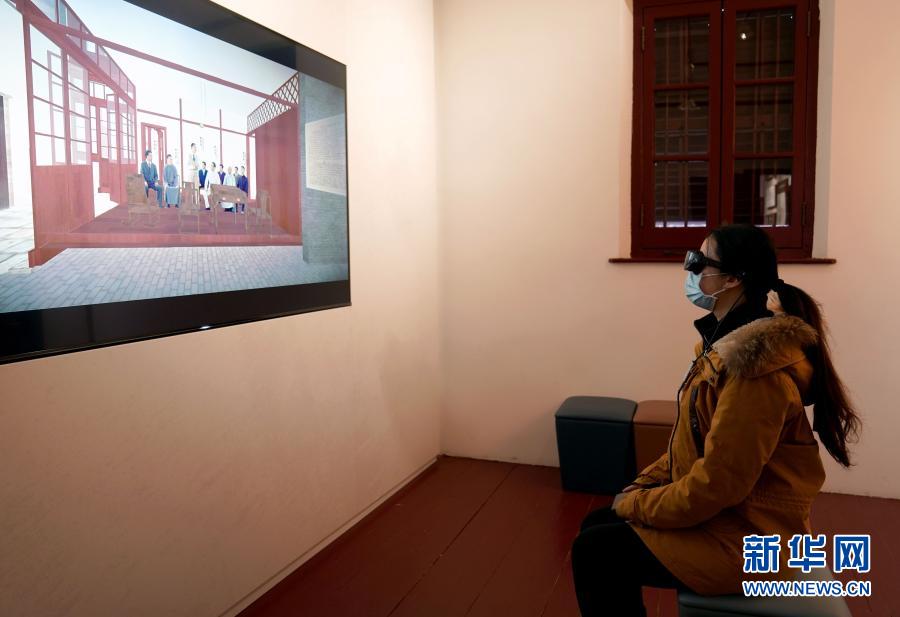 1月18日,参观者通过VR设备了解进步青年们在旧址内活动情况。新华社记者 刘颖 摄