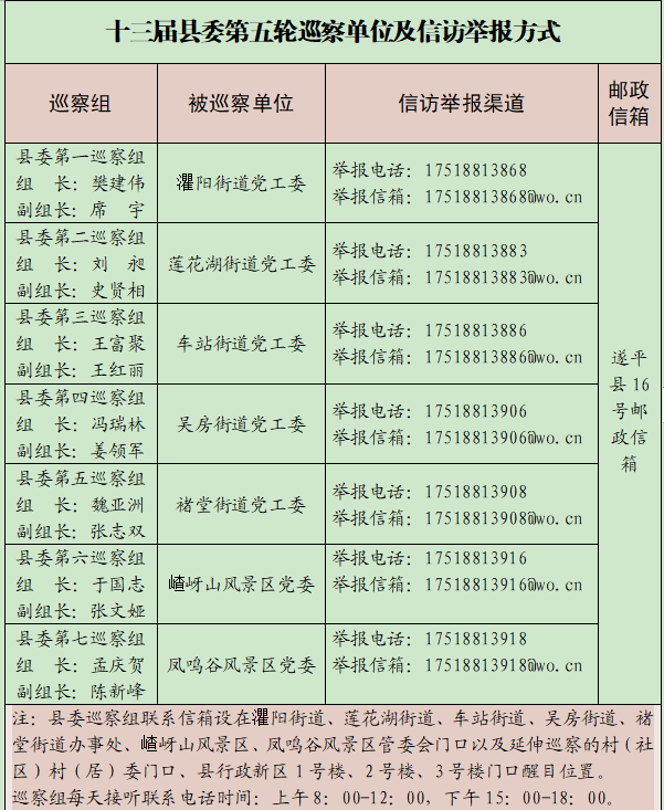 巡察期间,各巡察组均开通联系电话及手机短信、电子邮箱,并在被巡察单位办公场所等醒目位置设立联系信箱,接受干部群众反映问题。(遂平县纪委监委)