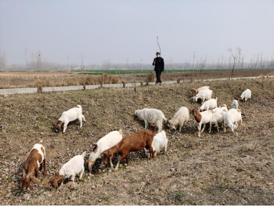 春风吹过,小草发芽,疫情好转,羊群出圈,戴上口罩,田埂漫转。
